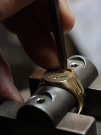 Rencontrez-nous pour fabriquer votre chevalière sur-mesure. La chevalière, portée depuis le XIXe siècle, incarne l’art héraldique. Nos gravures, donnent sens à ce bijoux, où chaque empreinte d’outil révèle une maîtrise absolue.